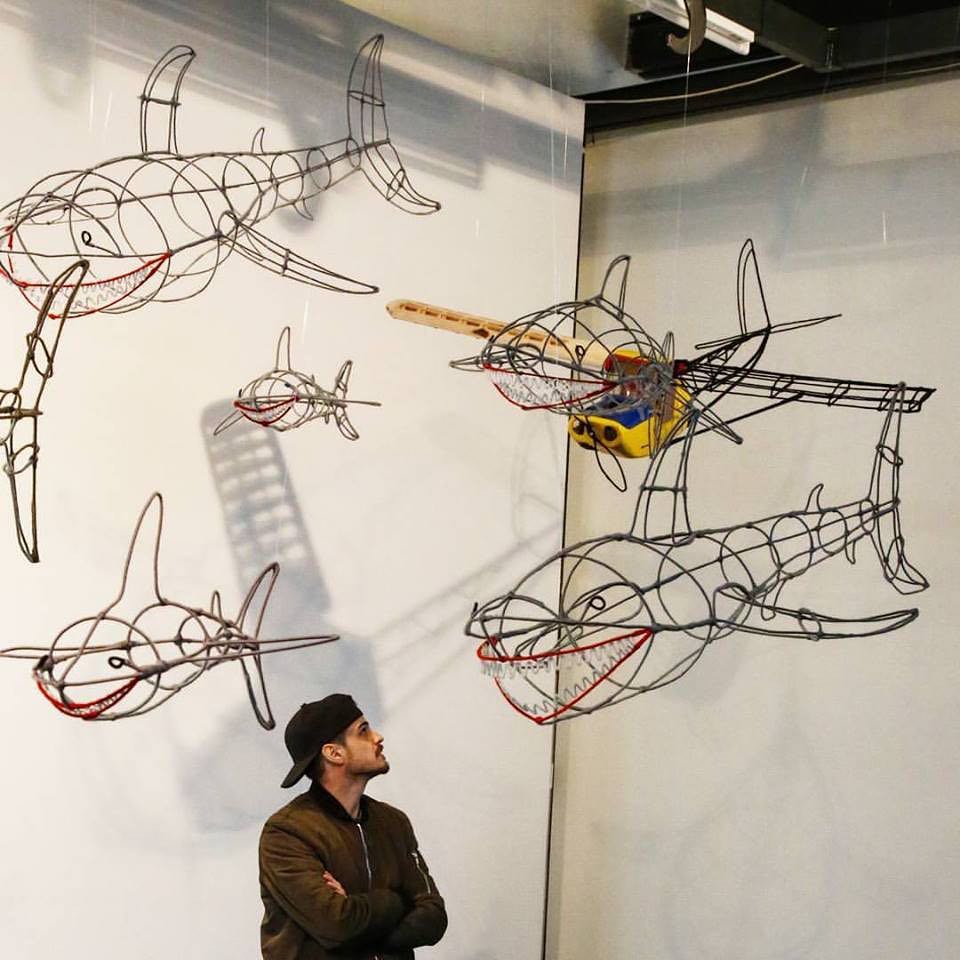 Born in 1987, he graduated from the Academy of Fine Arts of Naples in Visual Arts and Disciplines of The show, painting Address, then specialized at the Academy of fine arte of Roma, graduating with a thesis on sculpture. His curriculum includes participation in numerous contests and exhibitions in Italy and abroad, including his presence at the 54th edition of the Venice Biennale. He currently teaches Art Education at the Ministry of Public Education in Rome, where he lives since 2013. Michele Spina’s research moves along a path that aims to reveal the mechanisms dominating the art star system, using it as a vehicle for reporting, but also as a proposal to go beyond the banality of everyday life, to remember that it can be spirituality and dream, aimed at recovering the human dimension of existence. In the last few years he has made works using iron and wool, a traceable and recognizable trait that identifies SPINA in the world of contemporary art. Colorful and brilliant, Michele Spina’s art, as well as having a great deal of sensitivity, fascinates and enchants the viewer. His art contains a great magnetic force that seems to jump out of colors and curved lines. By meticulously wrapping the structures with colored wool threads, it manages to describe graphic volumes and empty bodies. He investigates the animal world: geese, deer, elephants, mice, birds… they come to life and enchants the viewer. While his works present on the one hand a parody of fashion, on the other hand his themes refer to a trash imaginary characteristic of the punk and underground creative world.