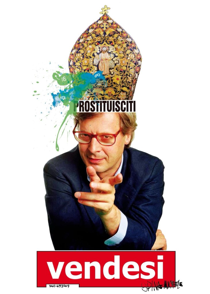 Parola di Spina è il titolo degli ultimi lavori di Michele Spina, realizzati su lastre di plexiglas e presentati presso la Galleria Rosso Fenice di Benevento, a partire dall’8 settembre 2012. Nella riflessione sui meccanismi dell’arte contemporanea, in particolare sulla commercializzazione dominante simboleggiata dalla sigla Vendesi, l’autore incrocia alcuni scrittori dell’Otto, come Baudelaire e Dickens, e del Novecento, come Neruda e Merini. E l’incontro avviene attraverso la libera proposizione di fotografie, che ritraggono le fattezze di ciascun personaggio, e l’individuazione di parole, che evocano il loro mondo o, meglio, l’impatto del loro mondo su Spina. Dalla testa di Charles Baudelaire fuoriesce un colorato aeroplano, sintesi immediata del vagheggiamento di partire, di andare lontano, come confermato dalle parole: Volo via da qui. Alda Merini indossa una preziosa mitra, che la trasforma in una sorta di papessa, attraverso un cortocircuito vertiginoso. Le parole scelte suonano come una solenne proclamazione: Non cercate di prendere i poeti perché vi scapperanno tra le dita. Selezionata per un’ esposizione al Museo d’Arte Urbana di Torino, inaugurata il 31 maggio scorso, l’opera ha già suscitato interesse. Risulta, a prima vista spiazzante la presenza, accanto agli scrittori citati, di Hitler, ma è l’altra faccia della parola che, invece di liberare l’uomo, l’opprime. Al feroce dittatore che reca un fiore rosa, quanto mai beffardo, si accompagnano le parole: I cry for Italy, not for my past. In occasione del Cam War Art Napoli, organizzato dallo stesso Spina e svoltosi il 10 maggio scorso, l’autore ha frantumato il suo lavoro a colpi di martello, destando l’attenzione, fra gli altri, della televisione tedesca. Non è un caso, dunque, che l’happening napoletano trovi spazio anche nell’edizione in corso di Documenta a Kassel. La serie Parola di Spina comprende, infine, un autoritratto che svela un profondo spirito ironico. Dopo la presentazione a grandezza naturale della figura di spalle, l’osservatore che si spinge a guardare dietro il pannello scopre che Spina è impegnato in un bisogno corporale. Questo lascia agli artisti la società d’oggi: Parola di Spina.