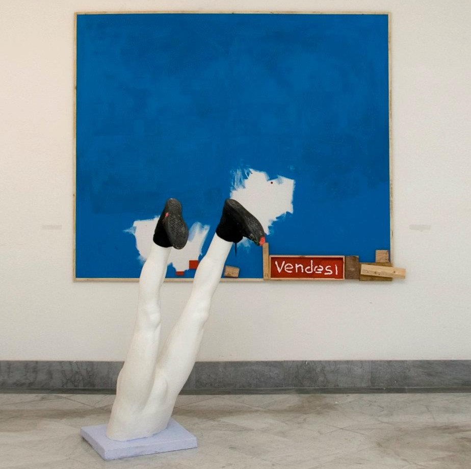 SEMPRE IO POSSO TUFFARMI CON LE SCARPE, installazione site specific, realizzata all’interno della mostra personale “VENDESI”.